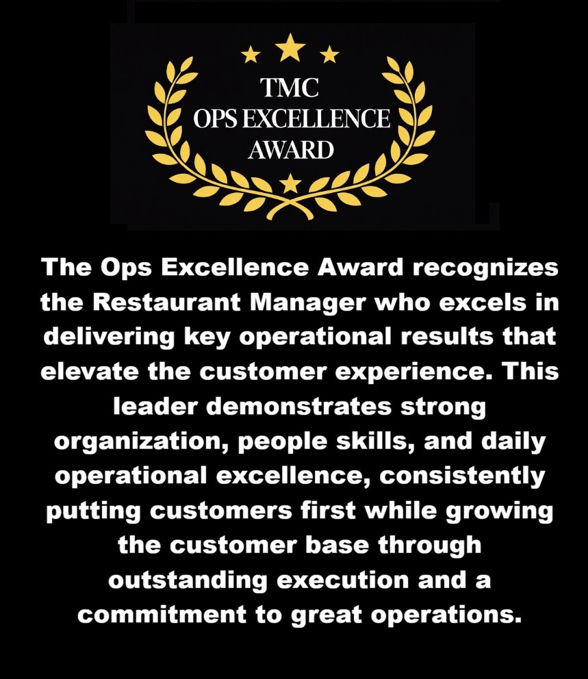 Brittany’s restaurant has set the standard for operational excellence across the system. Under her leadership, her team has led the company in nearly every operational metric, from the fastest drive-thru, kitchen, and front counter service times, to the highest overall customer satisfaction scores through VOICE, the lowest complaint rates, and top segmentation on the PACE portal. And, perhaps most impressively, her restaurant passed every graded visit with flying colors.